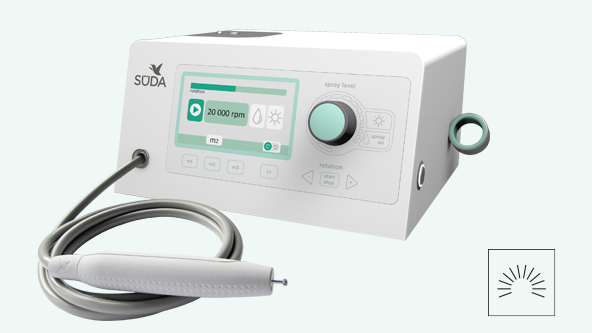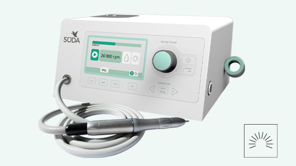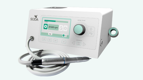 SÜDA S Pro Fußpflegegerät gibt es inklusive einem hochwertigem Dentalhandstück und optional mit einer LED-Lichtfunktion.