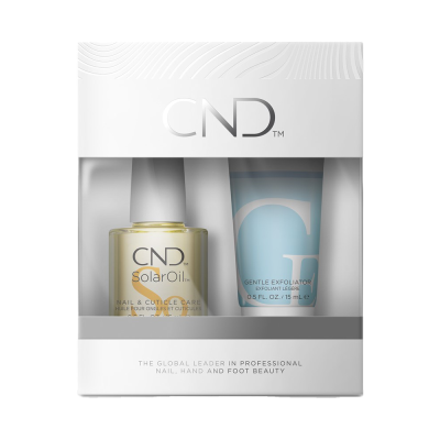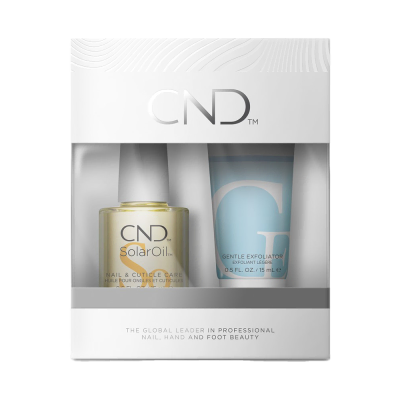 Pflegeset bestehend aus CND SolarOil und Cuticle Eraser 15g. Schützt die Nägel und Nagelhaut. Der Cuticle Eraser erweicht, peelt und entfernt trockene und verhärtete Nagelhaut mit Hilfe von A.H.A Säure.