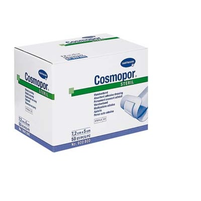 Cosmopor steril ist ein selbsthaftender Wundverband aus einem weichen Trägervlies und einem Wundkissen aus 100 % Baumwollwatte. Als zuverlässigen Schutz gegen ein Verkleben mit der Wunde verfügt Cosmopor steril als wundseitige Schicht über ein hydrophobes Micronetz, das zudem Wundsekret bzw. Exsudat rasch in das darüber liegende Saugkissen weiterleitet. Die selbsthaftende Klebezone ist durch einen hypoallergenen Polyacrylat-Kleber besonders gut hautverträglich.