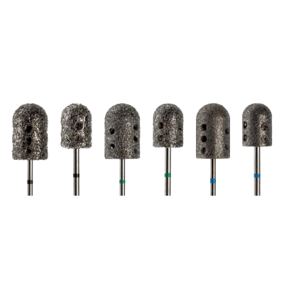 Je größer der Schleif- oder Fräserkopf ist, desto geringer die Umdrehungsgeschwindigkeit des Geräts. Die Kontrolle Ihrer Fräser mit der Fräserprüflehre auf den optimalen Rundlauf ist von großer Wichtigkeit. Niemals feuchte oder gar nasse Fräser in das Handstück geben. Fräser in Desinfektionslösung einlegen, herausnehmen und mit dem Handtuch oder Zellstofftuch abtrocknen. Die Fräser bleiben minimal feucht, wodurch sich bei mehrmaligem Fräserwechsel die Feuchtigkeit im Handstück erhöht. Die Desinfektion ist für die Fräser kein Problem, achten Sie jedoch auf die Einwirkzeit des jeweiligen Desinfektionsmittels. Die Sterilisation ist nur für Stahl, Hartmetall und Diamantfräser/-schleifer geeignet. Steinschleifer, Nagelpolierer, Kappenträger und Ersatzkappen sind nur desinfizierbar oder im Autoklav zu sterilisieren. Bevor Sie die Fräser/Schleifer sterilisieren, müssen sie vollkommen trocken sein. Alle Eiweißpartikel (Nagel oder Hautmaterial) müssen vor der Sterilisation gründlich entfernt werden. Verbleibende Rückstände werden durch die Sterilisation bräunlich. Bis zum nächsten Gebrauch die Fräser trocken aufbewahren. Verwenden Sie in der Nasstechnik nur Fräser mit einem Kopfdurchmesser von max. 65 mm (ISO-Nr. bis 065). Ihr Mikromotoren-Handstück wird es Ihnen durch längere Lebensdauer danken.