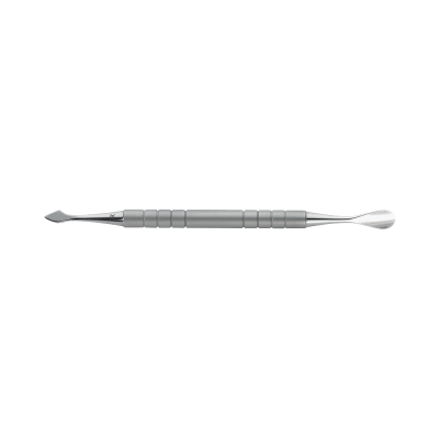 Praktisches Doppelinstrument aus Edelstahl: Nagelhautdrücker und -messer in einem.