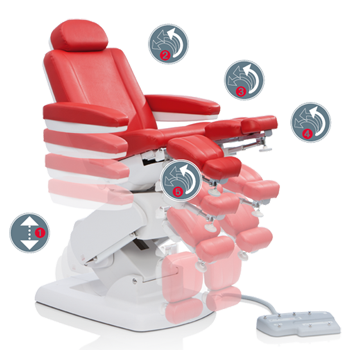 We are guided by three aspects when developing high-quality chiropody chairs: Besides maximum stability and safety are optimal suitability for ergonomic and efficient use in practice and the highest possible level of comfort for your client.