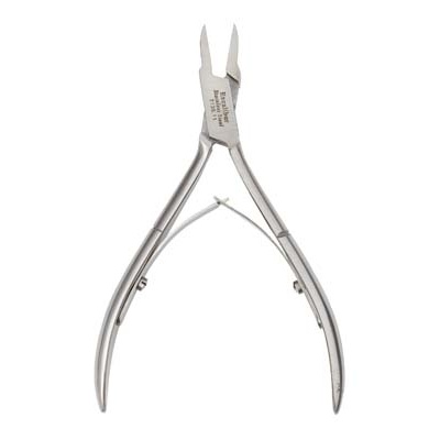 Durch Verjüngung der Backen ermöglicht diese Zange das Arbeiten an tieferliegenden Nagelecken. Das Instrument ist sandgestrahlt und hochglanzpoliert.