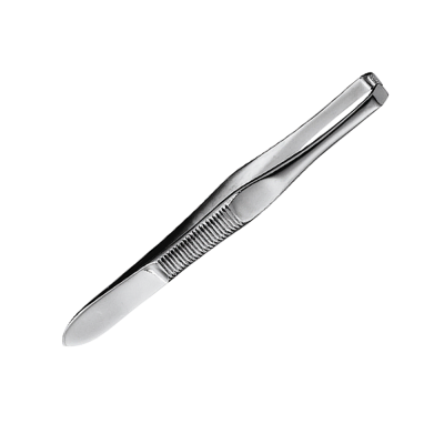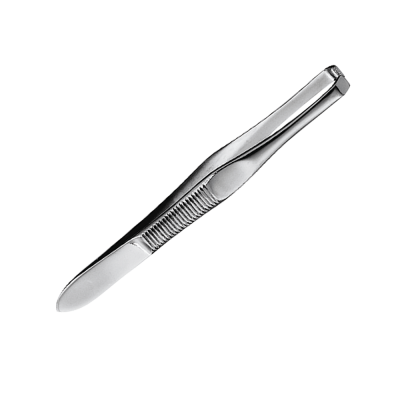 Kleine und handliche Pinzette mit gebogenen Enden, zum besseren Greifen von Härchen.