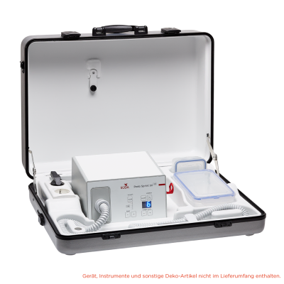 Der SÜDA Fußpflegekoffer mobil umfasst eine komfortable „Praxisausstattung” für unterwegs. Die zentrale Positionierung des Fußpflegegerätes sorgt für eine optimale Gewichtsverteilung des Koffers, die leicht zu reinigende, funktionsoptimierte Inneneinteilung bietet halt für das Fußpflegegerät und Zubehör.