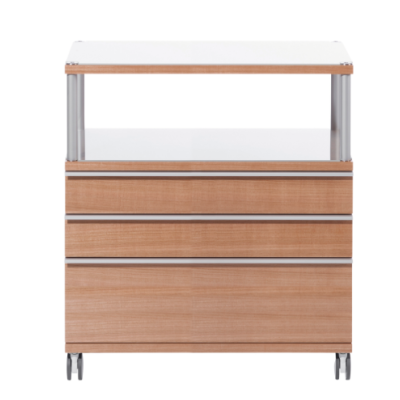 Die geräumigen Schubladen der Cubus-Serie sind mit Vollauszug sowie automatischer Soft-Schließfunktion versehen und lassen sich durch die Verwendungeines Spezialkunststoffs im Innenbereich besonders leicht reinigen. Dazu passend sind Schubladeneinsätze erhältlich.