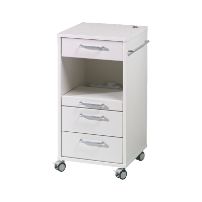 Ein schlichter und dennoch komfortabler Schrank zum Verstauen Ihres Behandlungszubehör mit integriertem Geräte-Fachauszug.