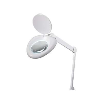 TRIA LED hochwertige, vielseitig einsetzbare Lupenleuchte, speziell für präzise Arbeiten in Laboren, Werkstätten, Kosmetikstudios und Fußpflege entwickelt. Mit ihrem eleganten Design in weiß lackiertem Metall fügt sie sich nahtlos in jede Arbeitsumgebung ein. Die TRIA LED-Lupenleuchte ist ausgestattet mit einem parallelen Dreifach-Schwenkarm und kreisförmiger Linse, sie spendet angenehmes warmweißes Licht.