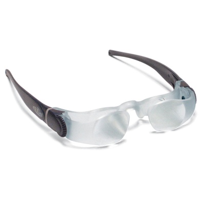 Arbeitsbrille mit 2-facher Vergrößerung. Beide Linsen können für jedes Auge getrennt auf Ihre individuelle Sehstärke und auf Ihre bevorzugte Arbeitsentfernung eingestellt werden.