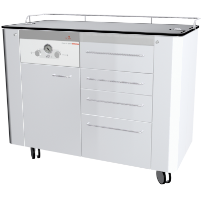 Der Antrieb erfolgt mittels eines Dental-Kompressors, welcher bei SÜDA Druckluft-Einheiten in einem passenden Schrank unauffällig, platzsparend und elegant verstaut ist. Die im Kompressor erzeugte Luft wird mittels eines dünnen Schlauches zur Behandlungseinheit, direkt zum Luft-Motor geführt. Bitte beachten Sie, das der Kompressor nicht im Lieferumfang enthalten ist.