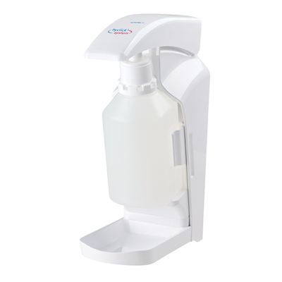 Wandspender speziell für hyclick-Flaschen zur hygienischen Dosierung von Händedesinfektionsmittel. Da Flasche und Pumpe fest miteinander verbunden sind, entfällt die Aufbereitung des Spenders.