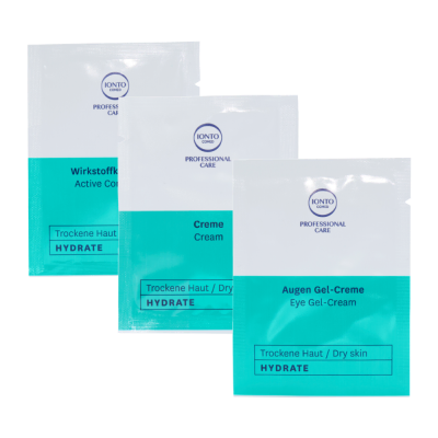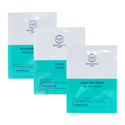 Mit diesem Set erhalten Sie je eine Probe von der IONTO-COMED PROFESSIONAL CARE HYDRATE Pflegeserie: