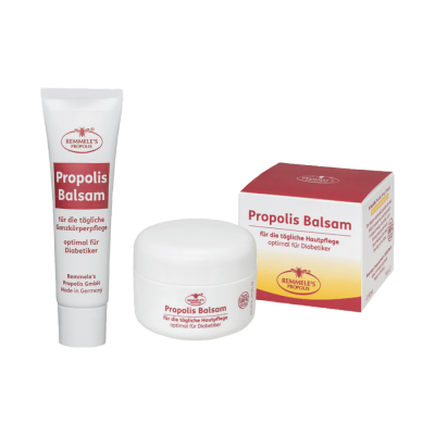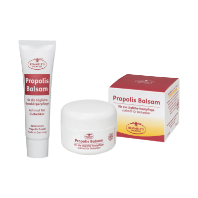 Seit über 40 Jahren werden die Pflegeprodukte mit den Naturstoffen Propolis und Gelée Royale erfolgreich in der Fußpflege und Kosmetik angewendet. Propolis ist das Kittharz der Bienen, mit dem diese ihren Bienenstock gegen Keime, Hitze und Kälte schützen. Diese vielfältige Wirkungsweise – antibakteriell, antiviral, antimykotisch, entzündungshemmend, regenerierend – entfaltet Propolis auch in den Grundprodukten für die Fußpflege/Podologie: Propolis Balsam-Spray, Propolis Lösung, Propolis Balsam und Propolis Shea-Balsam.
