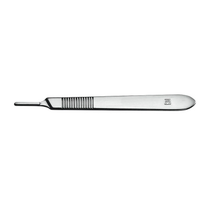 Der Klingenhalter ist passend für die Aesculap-Klingen Größe 10, 11, 13, und 15 sowie für die CARE MORE Skalpellklingen Größe 10, 11, 13 und 15.