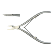 Stabile Eckenzange mit seitlich verjüngten Schneidbacken und einer extrem schmale Spitze. Ideal für tiefer liegende Nägel