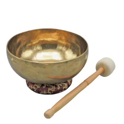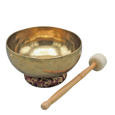 Klangschale für Körperarbeit und Entspannung, tiefer Klang, inkl. Ring und Filzklöppel.