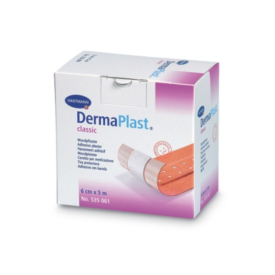 Das textile, robuste Wundpflaster zur Versorgung kleinerer Verletzungen bei Patienten mit empfindlicher Haut. Durch den Streifenauftrag des synthetischen Kautschukklebers und die hohe Luft- und Wasserdampfdurchlässigkeitdes Vliesstoffes ist DermaPlast classic atmungsaktiv und besonders hautverträglich. Zum Schutz vor äußerer Durchfeuchtung ist DermaPlast classic wasserabstoßend imprägniert. Das Wundpflaster verfügt über eine gute Haftkraft, lässt sich dabei aber schmerzlos und ohne Rückstände entfernen. Durch das robuste, textile Material ist DermaPlast classic besonders strapazierfähig. Die Wundauflage verfügt über eine gute Saugfähigkeit und verklebt nicht mit der Wunde.