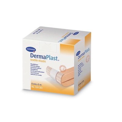 Das hypoallergene Wundpflaster aus querelastischem, textilem Gewebe mit synthetischem Kautschuk-Kleber und gut saugender Wundauflage ist ideal zur Versorgung kleinerer Verletzungen an viel bewegten/schwierigen Körperstellen. Bei der Applikation auf trockene und saubere Haut achten. Durch den Streifenauftrag des synthetischen Kautschukklebers und die hohe Luft- und Wasserdampfdurchlässigkeit des Vliesstoffes ist DermaPlast textile elastic atmungsaktiv und besonders hautverträglich. Zum Schutz vor äußerer Durchfeuchtung ist DermaPlast texile elastic wasserabstoßend imprägniert. Das Wundpflaster verfügt über eine gute Haftkraft, lässt sich dabei aber schmerzlos und ohne Rückstände entfernen. Durch die hohe Querelastizität des Gewebes kann DermaPlast textile elastic gut an Gelenke und konische Körperteile angepasst werden und haftet auch bei Bewegungen zuverlässig auf der Haut. Die Wundauflage verfügt über eine gute Saugfähigkeit und verklebt nicht mit der Wunde.